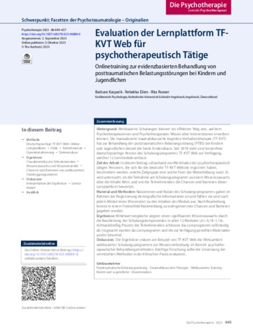 Evaluation der Lernplattform TF-KVT Web für psychotherapeutisch Tätige : Onlinetraining zur evidenzbasierten Behandlung von posttraumatischen Belastungsstörungen bei Kindern und Jugendlichen.