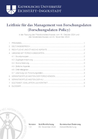 Leitlinie für das Management von Forschungsdaten (Forschungsdaten-Policy) der Katholischen Universität Eichstätt-Ingolstadt.