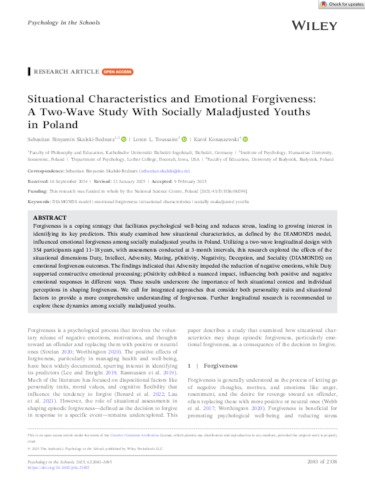 Situational Characteristics and Emotional Forgiveness : A Two-Wave Study With Socially Maladjusted Youths in Poland.