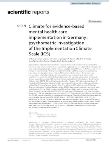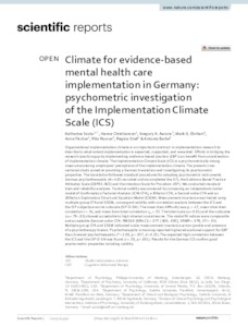 Climate for evidence-based mental health care implementation in Germany : psychometric investigation of the Implementation Climate Scale (ICS).