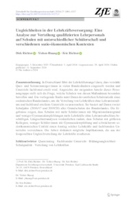 Ungleichheiten in der Lehrkräfteversorgung : eine Analyse zur Verteilung qualifizierten Lehrpersonals auf Schulen mit unterschiedlicher Schülerschaft und verschiedenen sozio-ökonomischen Kontexten.
