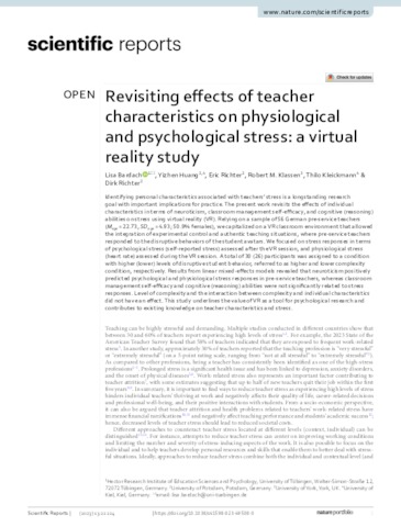 Revisiting effects of teacher characteristics on physiological and psychological stress : a virtual reality study.