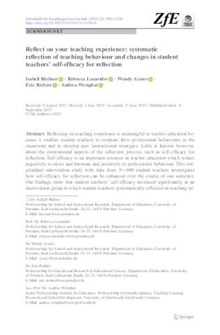 Reflect on your teaching experience : Systematic reflection of teaching behaviour and changes in student teachers’ self-efficacy for reflection.