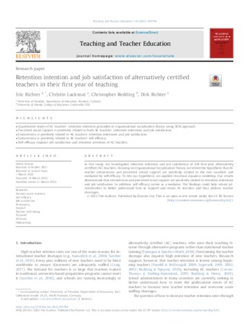 Retention intention and job satisfaction of alternatively certified teachers in their first year of teaching.