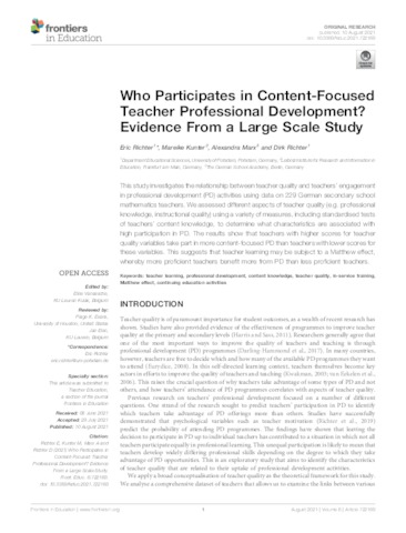 Who participates in content-focused teacher professional development? : Evidence from a large scale study.