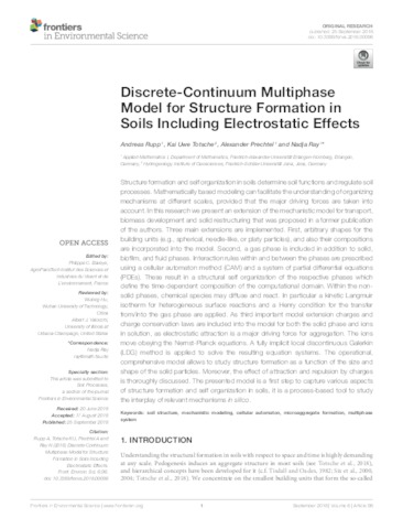 Discrete-continuum multiphase model for structure formation in soils including electrostatic effects.