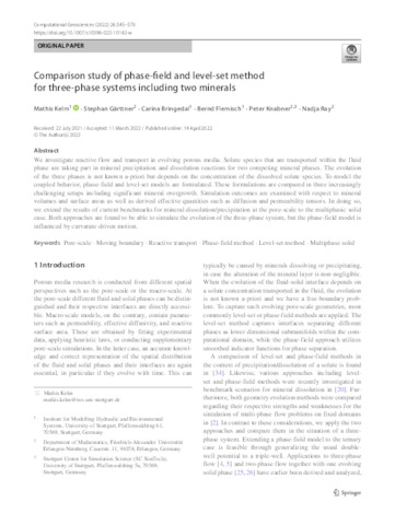 Comparison study of phase-field and level-set method for three-phase systems including two minerals.