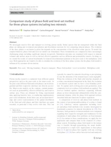 of the three phases is not known a-priori but depends on the concentration of the dissolved solute species. To model the coupled behavior, phase-field and level-set models are formulated. These formulations are compared in three increasingly