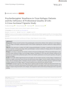 Psychotherapists' Readiness to Treat Refugee Patients and the Influence of Professional Quality of Life : A Cross‐Sectional Vignette Study.