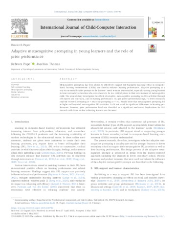 Adaptive Metacognitive Prompting in Young Learners and the Role of Prior Performance.