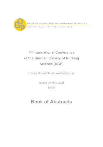 In: 4th International Conference of the German Society of Nursing Science (DGP): Nursing Research : Are we keeping up? ; Book of Abstracts. 08. & 09. 05.2025 Berlin. -
