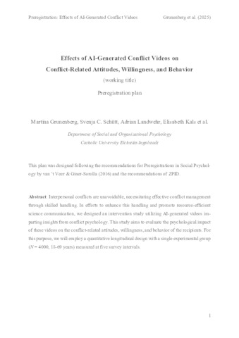 | Schlagwörter: | Generative AI; Video Intervention Study; Conflict Psychology; Attitude Change; Preregistration |