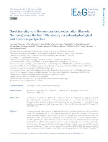 Great transitions in Donaumoos land reclamation (Bavaria, Germany) since the late 18th century : a palaeohydrological and historical perspective.
