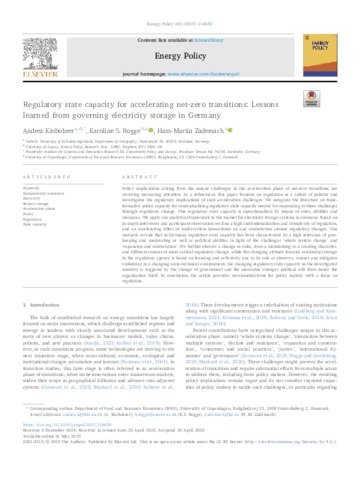 Regulatory state capacity for accelerating net-zero transitions : Lessons learned from governing electricity storage in Germany.