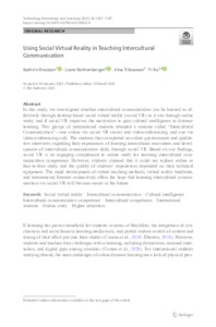 Using Social Virtual Reality in Teaching Intercultural Communication.