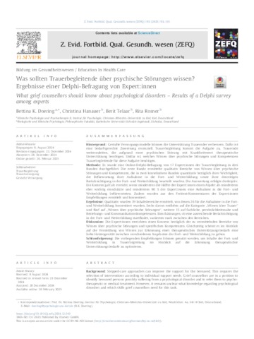 Was sollten Trauerbegleitende über psychische Störungen wissen? : Ergebnisse einer Delphi-Befragung von Expert:innen.