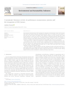 A systematic literature review of performance measurement systems and the integration of ESG factors.