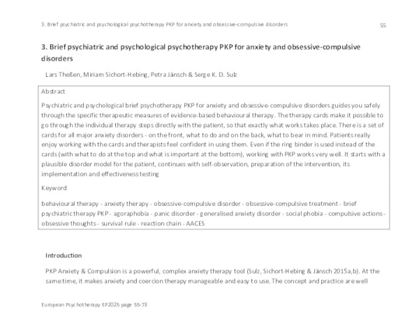 Brief psychiatric and psychological psychotherapy PKP for anxiety and obsessive-compulsive disorders.