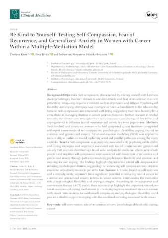 Be Kind to Yourself : Testing Self-Compassion, Fear of Recurrence, and Generalized Anxiety in Women with Cancer Within a Multiple-Mediation Model.