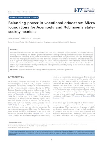 Balancing power in vocational education : Micro foundations for Acemoglu and Robinson's state-society heuristic.