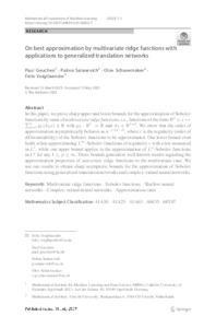 On best approximation by multivariate ridge functions with applications to generalized translation networks.