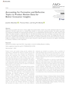 Observations of product and service reviews suggest that textual product reviews may contain statements about the overall experience (“We had a great time”) or, similarly, about whether to recommend a particular product. The authors argue that such statements encapsulate an overall assessment and hence are not independently informative about, but rather reflect, overall ratings. The authors propose a model that allows for the distinction between topics that contribute to and topics that merely reflect an overall evaluation and apply the model to a dataset consisting of luxury hotel reviews. The findings show that, compared with a standard supervised latent Dirichlet allocation, the proposed model better fits the data and improves customer insights by resulting in more semantically coherent topics that point at specific aspects with positive and negative relationships to customers’ evaluation of their experience.