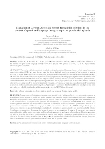 Evaluation of German Automatic Speech Recognition solutions in the context of speech and language therapy support of people with aphasia.