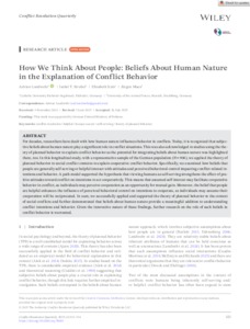 How we think about people : Beliefs about human nature in the explanation of conflict behavior.