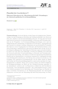 In diesem Beitrag werden Fragen der pädagogischen Thematisierung von und Erinnerung an Holocaust und Nationalsozialismus, also Holocaust Education, konkret in der Erwachsenenbildung adressiert. Er fragt nach der Gestaltung historisch-politischer Erwachsenenbildung zu Holocaust und Nationalsozialismus aus der Perspektive von Erwachsenenbildungseinrichtungen sowie nach der Wahrnehmung und Anerkennung von Pluralität in Geschichte(n), Vergangenheit(en) und Narrativen im Kontext moderner Migrationen als gesellschaftliche Normalität. Das Interesse an der Vergangenheit des Holocaust und Nationalsozialismus sowie deren Erinnerung ist anhaltend hoch und erneut hochaktuell und relevant. In der Erforschung der pädagogischen Vermittlung des Holocaust zeigen sich jedoch Lücken. Es lassen sich zum einen eine Diskrepanz zwischen der Quantität sowie Relevanz der historisch-politischen Erwachsenenbildung zu Holocaust und Nationalsozialismus und deren Erforschung, zum anderen zwischen der migrationsgesellschaftlichen Realität und der Repräsentation verschiedener migrantischer Vergangenheitsbezüge in der Bildungsarbeit identifizieren. Der Beitrag setzt an diesen Leerstellen an. Auf Grundlage eines qualitativen Forschungsdesigns zielt die Studie darauf ab, Inhalte und Formate der Erwachsenenbildungsangebote zu untersuchen und damit die Angebotslandschaft zu erkunden. Weiter zielt sie auf die Analyse der Selbstverständnisse der Bildungseinrichtungen mit Blick auf ihre Selbstpositionierung gegenüber einer demokratisch verfassten und von Migrationen strukturierten und beeinflussten Gesellschaft. Unter Bezugnahme migrations- und erinnerungstheoretischer Linsen wird Einblick genommen in die Darstellung und Thematisierung von Pluralität im Sinne verwobener Geschichte(n) in der Migrationsgesellschaft. Die untersuchten Dokumente verweisen auf eine Benennung und damit Relevanzsetzung von Pluralität und globaler Verwobenheit von Geschichte(n), wenngleich in überschaubaren Dimensionen.