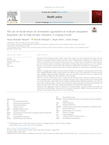 The use of social return on investment approaches to evaluate integrated long-term care in high-income countries : A scoping review.