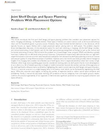 Joint Shelf Design and Space Planning Problem With Placement Options.