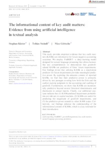 The informational content of key audit matters: Evidence from using artificial intelligence in textual analysis.