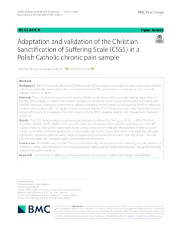 Adaptation and validation of the Christian Sanctification of Suffering Scale (CSSS) in a Polish Catholic chronic pain sample.
