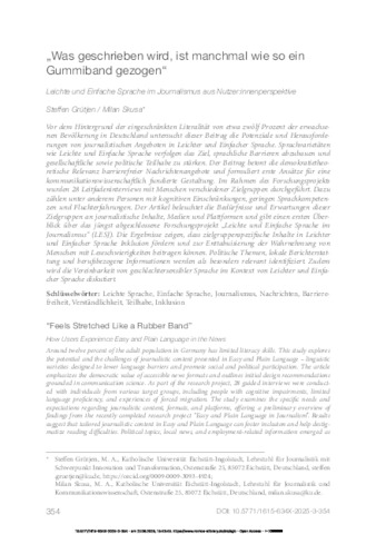 Vor dem Hintergrund der eingeschränkten Literalität von etwa zwölf Prozent der erwachsenen Bevölkerung in Deutschland untersucht dieser Beitrag die Potenziale und Herausforderungen von journalistischen Angeboten in Leichter und Einfacher Sprache. Sprachvarietäten wie Leichte und Einfache Sprache verfolgen das Ziel, sprachliche Barrieren abzubauen und gesellschaftliche sowie politische Teilhabe zu stärken. Der Beitrag betont die demokratietheoretische Relevanz barrierefreier Nachrichtenangebote und formuliert erste Ansätze für eine kommunikationswissenschaftlich fundierte Gestaltung. Im Rahmen des Forschungsprojekts wurden 28 Leitfadeninterviews mit Menschen verschiedener Zielgruppen durchgeführt. Dazu zählen unter anderem Personen mit kognitiven Einschränkungen, geringen Sprachkompeten zen und Fluchterfahrungen. Der Artikel beleuchtet die Bedürfnisse und Erwartungen dieser Zielgruppen an journalistische Inhalte, Medien und Plattformen und gibt einen ersten Überblick über das jüngst abgeschlossene Forschungsprojekt „Leichte und Einfache Sprache im Journalismus“ (LESJ).