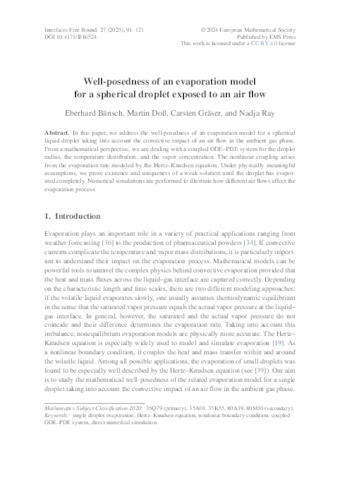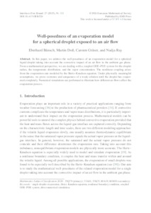 Well-posedness of an evaporation model for a spherical droplet exposed to an air flow.