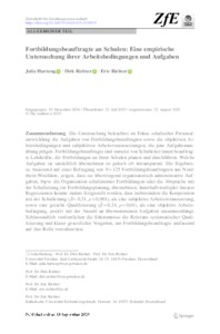 Die Untersuchung beleuchtet im Fokus schulischer Personalentwicklung die Aufgaben von Fortbildungsbeauftragten sowie die objektiven Arbeitsbedingungen und subjektiven Arbeitsvoraussetzungen, die jene Aufgabenausübung prägen. Fortbildungsbeauftragte sind zumeist von Schulleiter:innen beauftragte Lehrkräfte, die Fortbildungen an ihren Schulen planen und durchführen. Welche Aufgaben sie tatsächlich übernehmen ist jedoch oft intransparent. Die Ergebnisse, basierend auf einer Befragung von N = 125 Fortbildungsbeauftragten aus Nordrhein-Westfalen, zeigen, dass sie überwiegend organisatorisch-administrative Aufgaben, bspw. die Organisation schulinterner Fortbildungen oder die Absprache mit der Schulleitung zur Fortbildungsplanung, übernehmen. Innerhalb multipler linearer Regressionen konnte zudem festgestellt werden, dass insbesondere die Kooperation mit der Schulleitung (= 0,31, p < 0,001), als eine subjektive Arbeitsvoraussetzung, sowie eine gezielte Qualifizierung ( = 0,24, p < 0,01), als eine objektive Arbeitsbedingung, positiv mit der Anzahl an übernommenen Aufgaben zusammenhängt. Schlussendlich verdeutlichen die Erkenntnisse die Relevanz systematischer Qualifizierung und klarer gesetzlicher Vorgaben, um Fortbildungsbeauftragte umfassend auf ihre Rolle vorzubereiten.