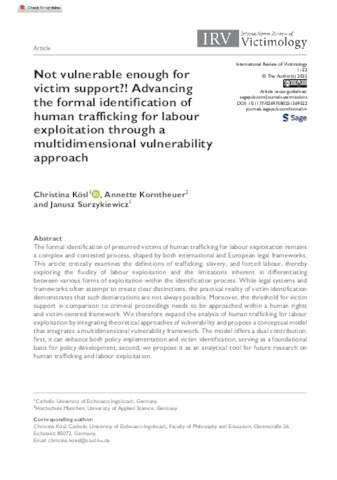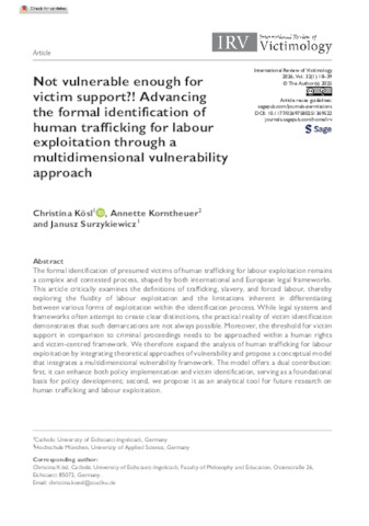 Not vulnerable enough for victim support?! : Advancing the formal identification of human trafficking for labour exploitation through a multidimensional vulnerability approach.