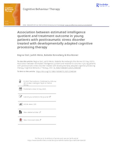 Association between estimated intelligence quotient and treatment outcome in young patients with posttraumatic stress disorder treated with developmentally adapted cognitive processing therapy.