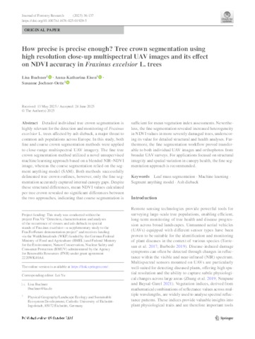 How precise is precise enough? : Tree crown segmentation using high resolution close‑up multispectral UAV images and its effect on NDVI accuracy in Fraxinus excelsior L. trees.
