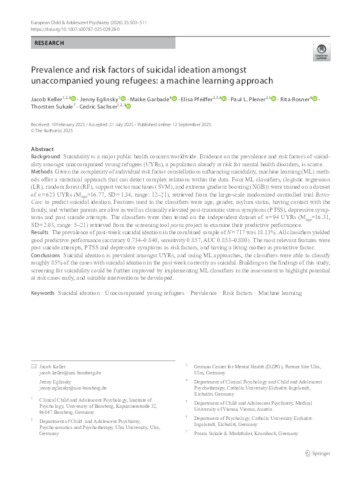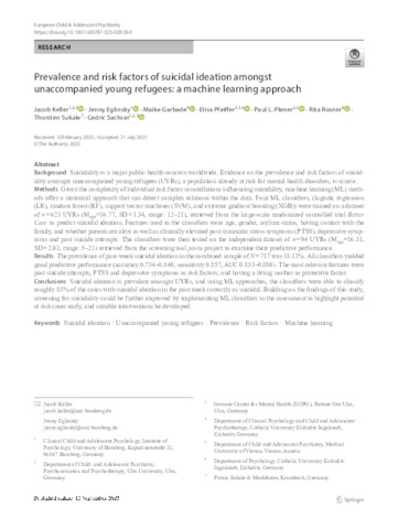 Prevalence and risk factors of suicidal ideation amongst unaccompanied young refugees : a machine learning approach.