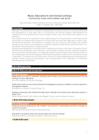 Veranstaltung: Music education in non-formal settings: Community music with children and youth, 17.10.2025, Brixen, The Free University of Bozen-Bolzano.