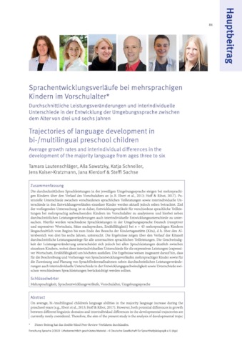 Sprachentwicklungsverläufe bei mehrsprachigen Kindern im Vorschulalter : durchschnittliche Leistungsveränderungen und interindividuelle Unterschiede in der Entwicklung der Umgebungssprache zwischen dem Alter von drei und sechs Jahren.
