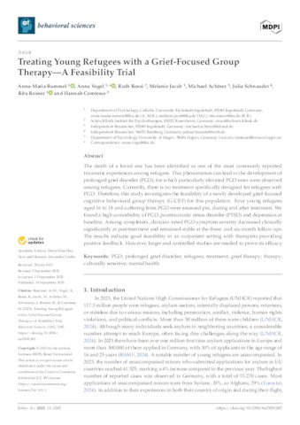 Treating Young Refugees with a Grief-Focused Group Therapy : A Feasibility Trial.