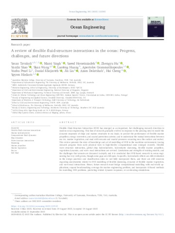 A review of flexible fluid-structure interactions in the ocean : Progress, challenges, and future directions.