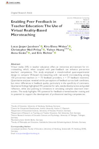 Enabling Peer Feedback in Teacher Education : The Use of Virtual Reality-Based Microteaching.