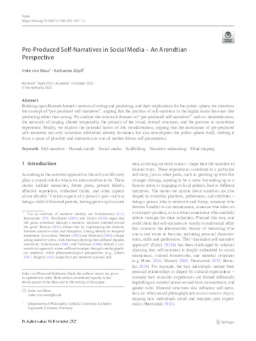 Pre-Produced Self-Narratives in Social Media : An Arendtian Perspective.