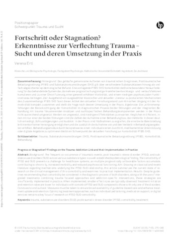 Fortschritt oder Stagnation? : Erkenntnisse zur Verflechtung Trauma – Sucht und deren Umsetzung in der Praxis.