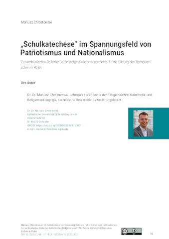 „Schulkatechese“ im Spannungsfeld von Patriotismus und Nationalismus : Zur ambivalenten Rolle des katholischen Religionsunterrichts für die Bildung des Demokratischen in Polen.