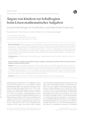 Ängste von Kindern vor Schulbeginn beim Lösen mathematischer Aufgaben : Zusammenhänge mit kindlichen und elterlichen Faktoren.