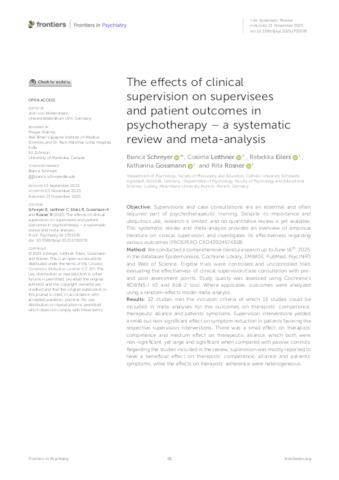Supervisions and case consultations are an essential and often required part of psychotherapeutic training. Despite its importance and ubiquitous use, research is limited, and no quantitative review is yet available. This systematic review and meta-analysis provides an overview of empirical literature on clinical supervision and investigates its effectiveness regarding various outcomes (PROSPERO CRD42024574318).